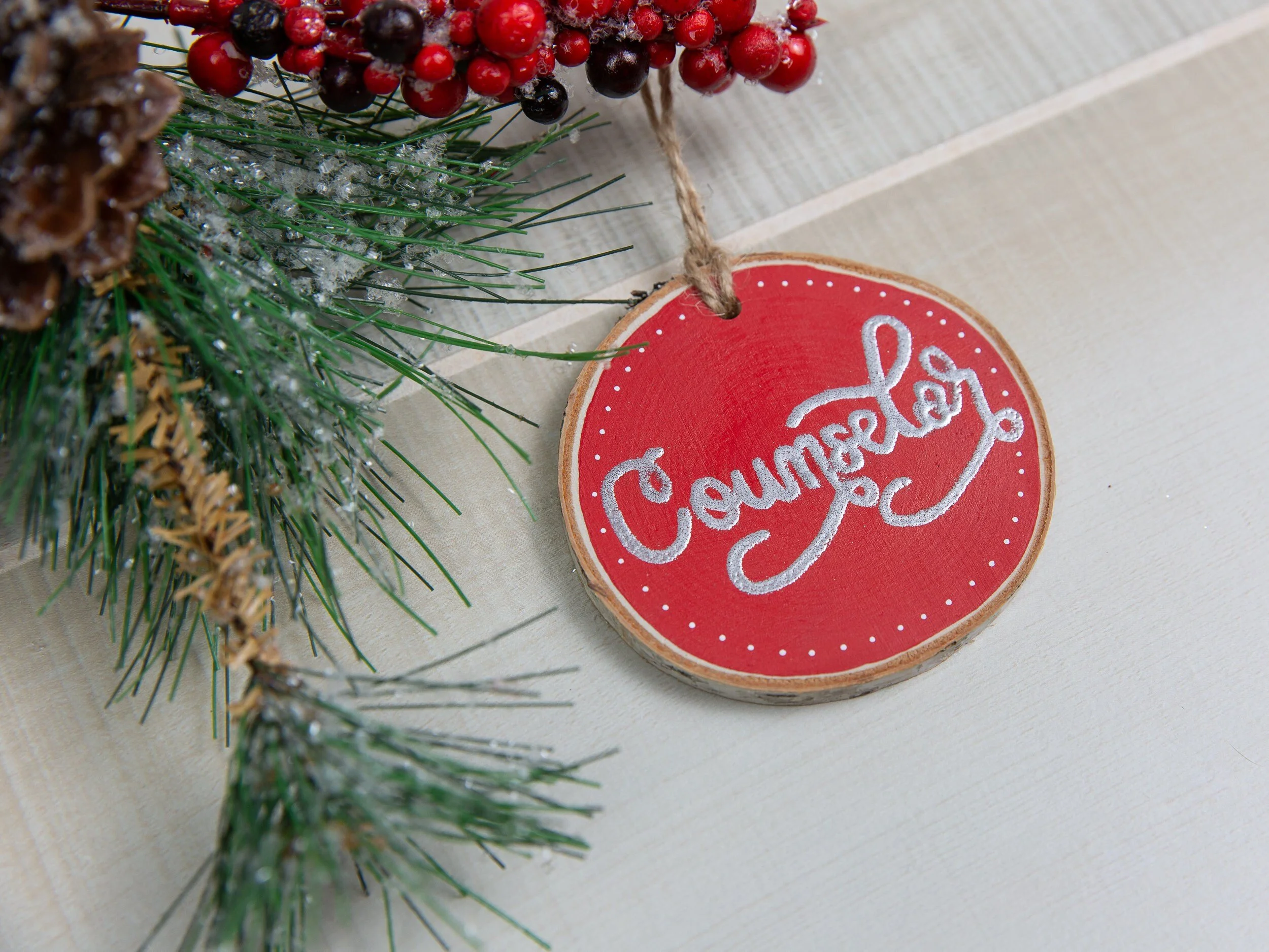 Please note, each ornament is unique due to slight variations in the wood (including the shape, bark, and grain), and because each design is hand-painted or hand-burned, no two ornaments will be exactly alike. The ornament you receive may vary slightly from the photograph.